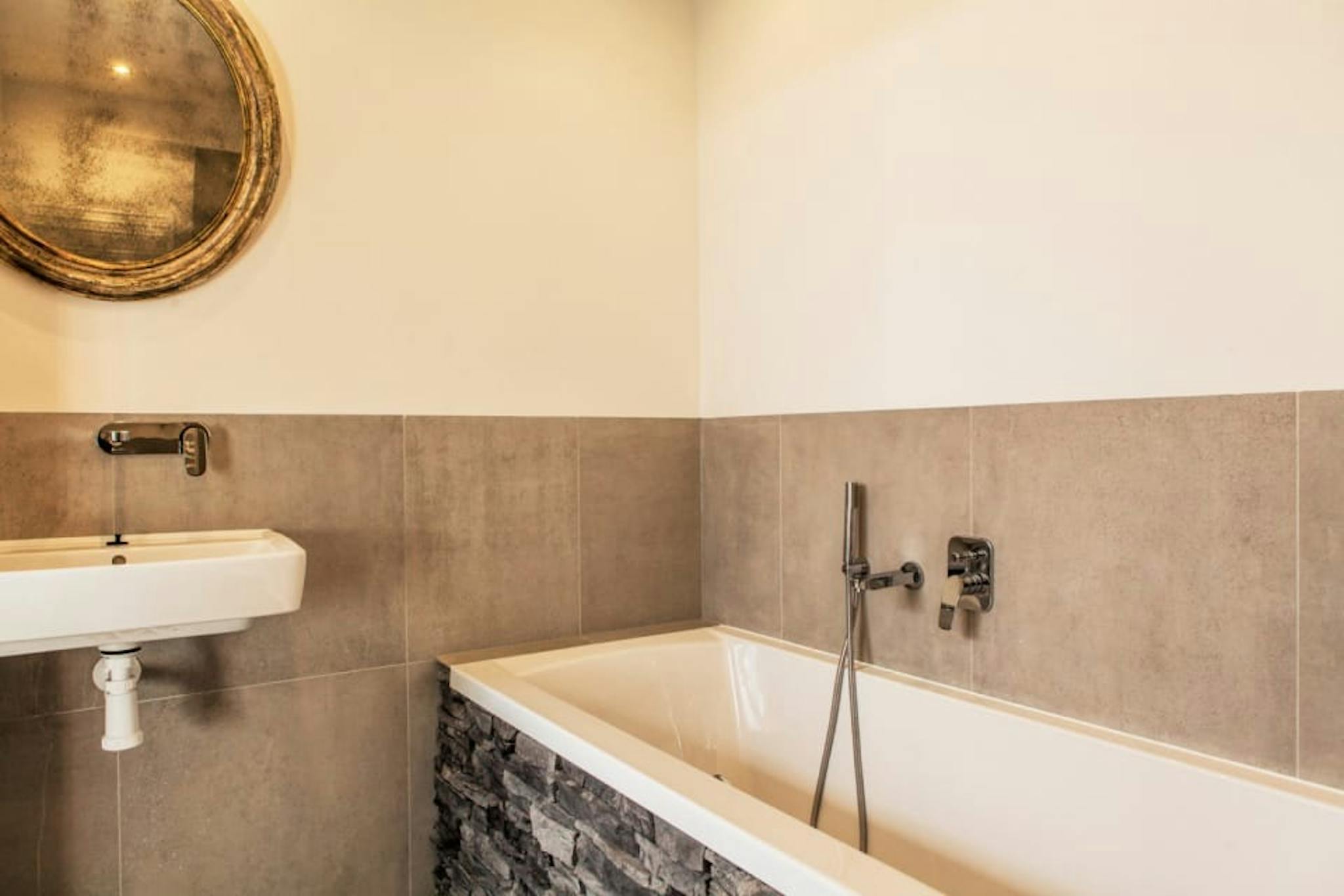The three spacious bedrooms are on the top floor, each furnished with a double bed to ensure a quiet and restful sleep. The bathroom includes a shower, bathtub, sink, and toilet. For music lovers, an antique Blüthner upright piano adds a unique and charming touch to the home.
