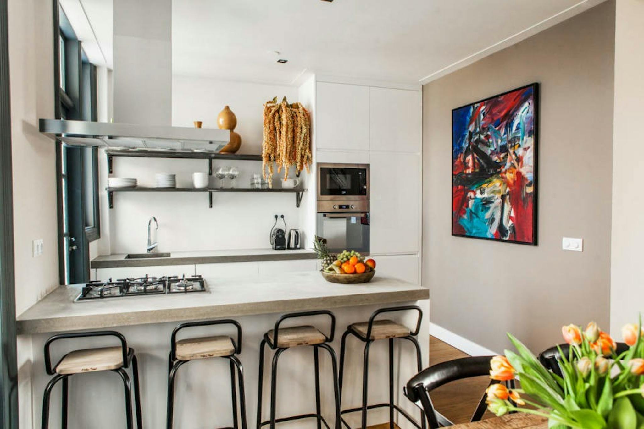 Located in a quiet residential area on the outskirts of Amsterdam’s city centre, the penthouse overlooks the beautiful Kostverloren canal and is just steps from the famous and tranquil Vondelpark. Nearby, Overtoom street offers a vibrant mix of interior design shops, antiques, local bars, and culinary delights. Stock up on fresh produce at local grocery stores or the Ten Katestreet open market. A relaxing walk through Vondelpark leads you to the museum quarter, home to the Rijksmuseum, Van Gogh Museum, Museum of Modern Art, and the popular PC Hooftstraat shopping street. The city centre is easily accessible by tram, with bike and boat rentals also close by for exploring Amsterdam like a local.