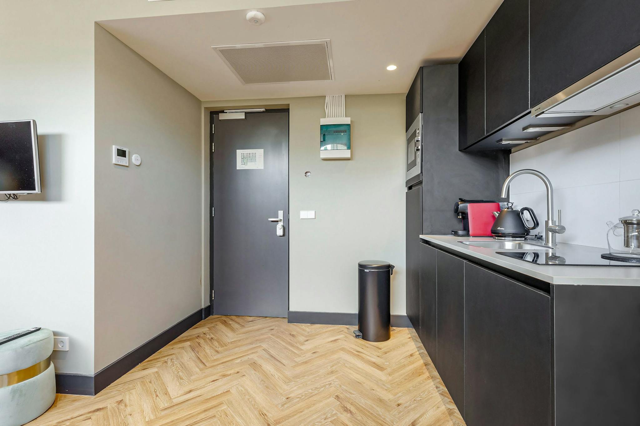 Modern Furnished Studio Apartments Near Rembrandt Park Located in a beautifully preserved historical building near Rembrandt Park, offering the perfect blend of comfort and convenience for extended stays in Amsterdam. Just 7 minutes by train from Schiphol Airport and steps away from Lidl supermarkets and green spaces. Each thoughtfully designed studio features warm, modern interiors in natural tones with a fully equipped kitchen, private ensuite bathroom, dining table/workspace, high-speed Wi-Fi, and ample natural light. Studios are spread over two floors, providing a comfortable and practical living environment. Building amenities include complimentary coffee, tea, and chocolate milk in the lobby (small fee may apply) and a communal workbar for networking and remote work. These apartments are ideal for professionals, digital nomads, or couples seeking a longer-term home with full private access to their apartment and all essentials provided.