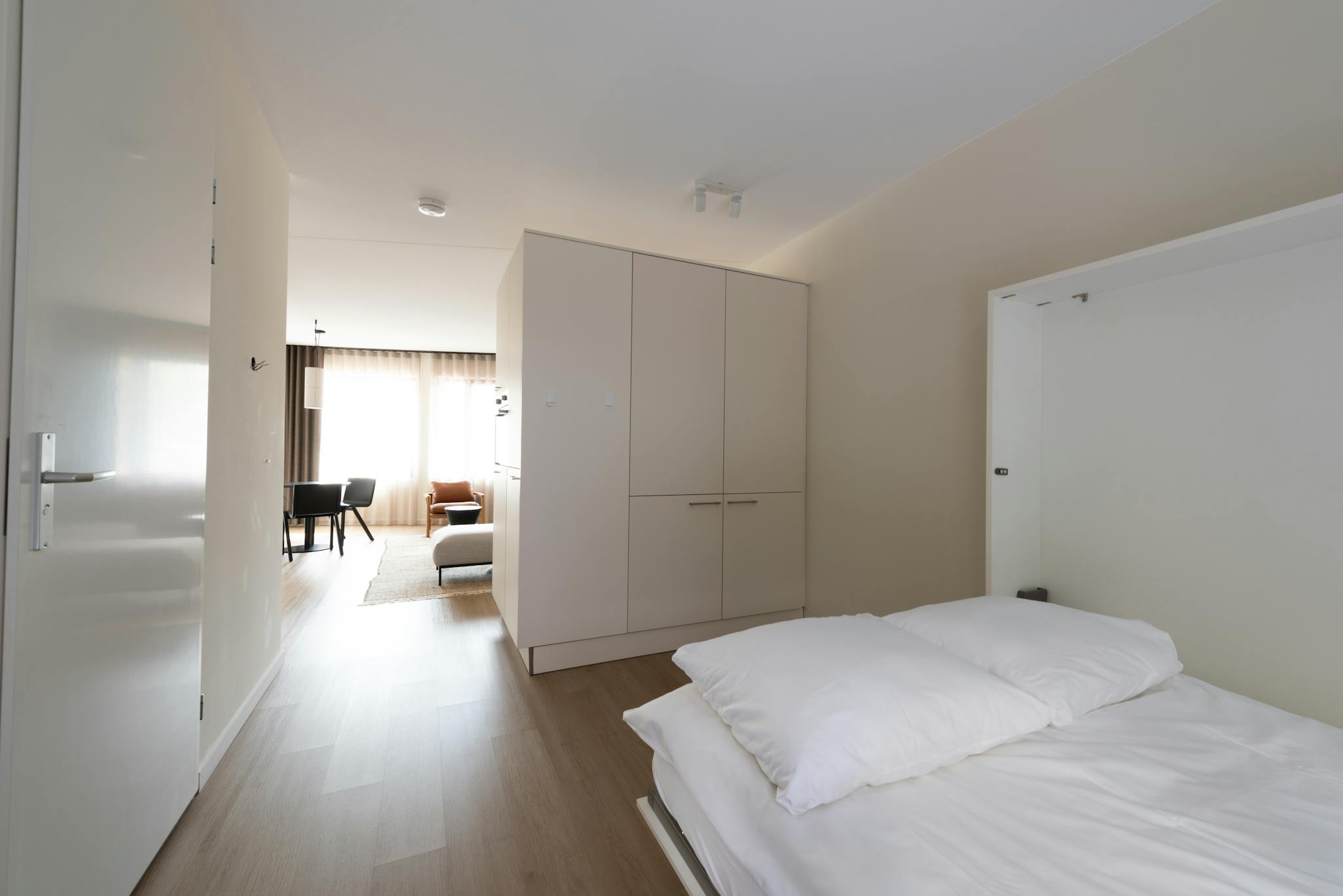 The Economist apartments are homes on the ground floor without a balcony. However, they all border directly on the spacious green courtyard, so there is no lack of outdoor feeling. The Economist apartments are 41m2 and all have a desk bed, and a large piece of furniture that separates the living area from the sleeping area. They also all have a sofa bed, which is ideal for guests. Anyone who feels like enjoying the sun can open their doors and take a seat in the beautiful courtyard.