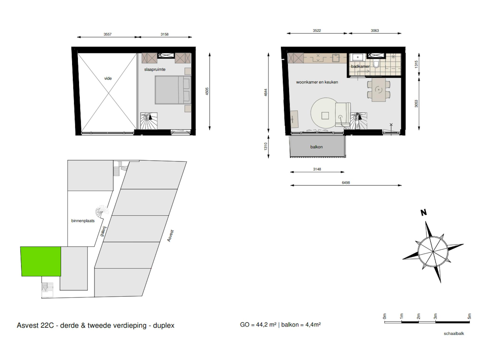 The design of this property has a very modern approach, giving it a very chic appearance. The Scandinavian interior ensures plenty of brightness and light in the studio. The space is cleverly divided by using a desk bed. This piece of furniture functions when unfolded as a bed (160x200) and folded as a desk to save space. The other bed on the upper floor of the apartment is a regular double bed.
