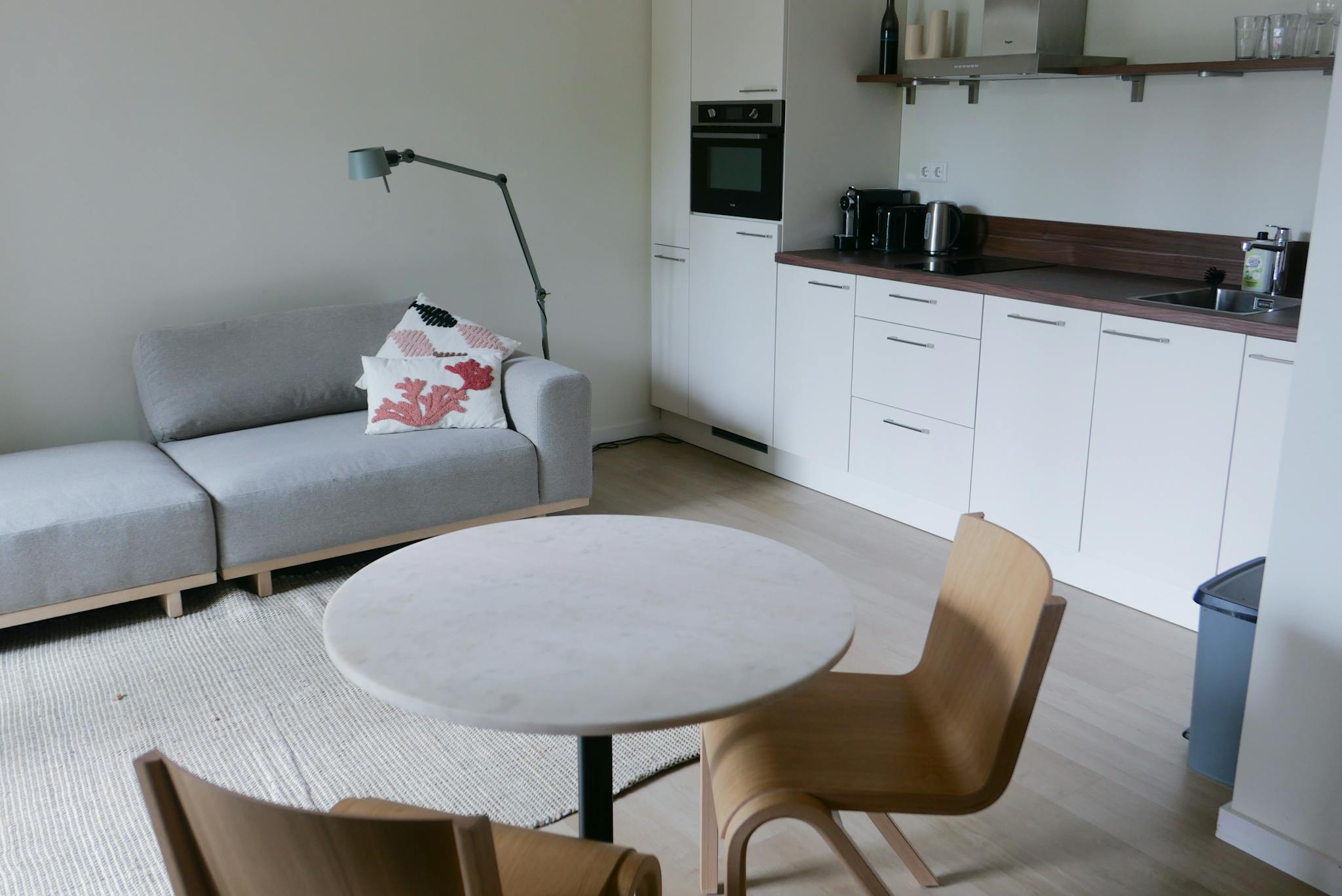 The courtyard studios are the smallest studios we offer in terms of square meters, but that certainly does not make them less pleasant to stay in. The smart layout ensures that they still feel spacious and because of the view of the courtyard, the studio feels light, spacious, and relaxing.