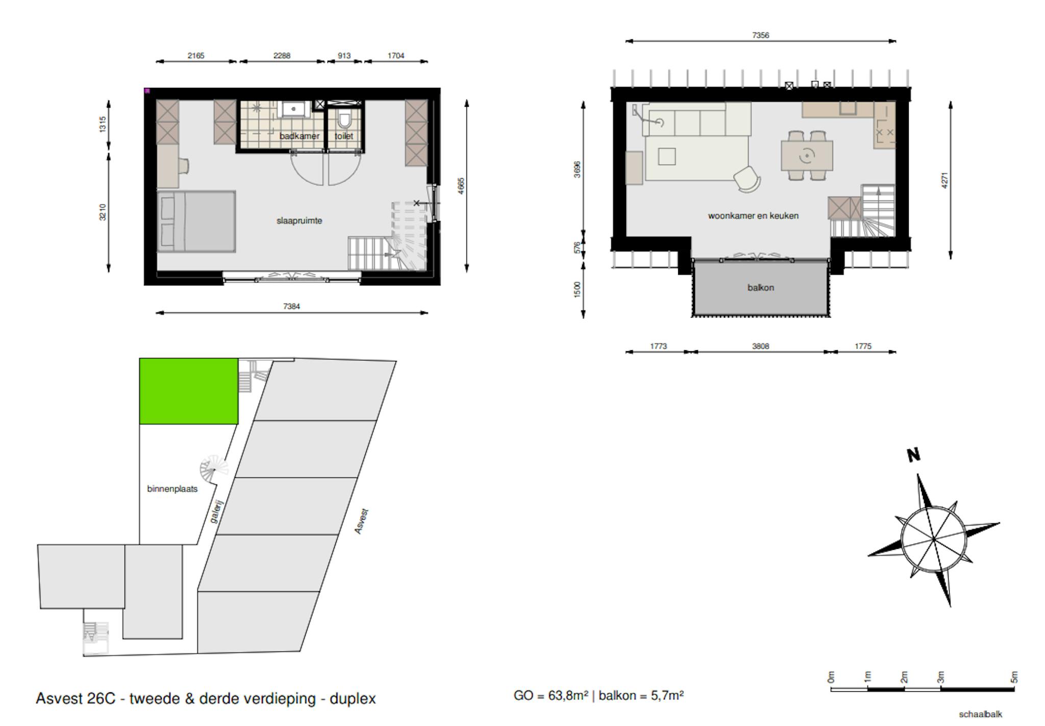 This duplex apartment, located on the second & third floor of the building, is 64 square meters in size and has a balcony of 5,7 m2. The apartment is fully equipped and furnished and unique since we only have one gorgeous duplex apartment for rent!