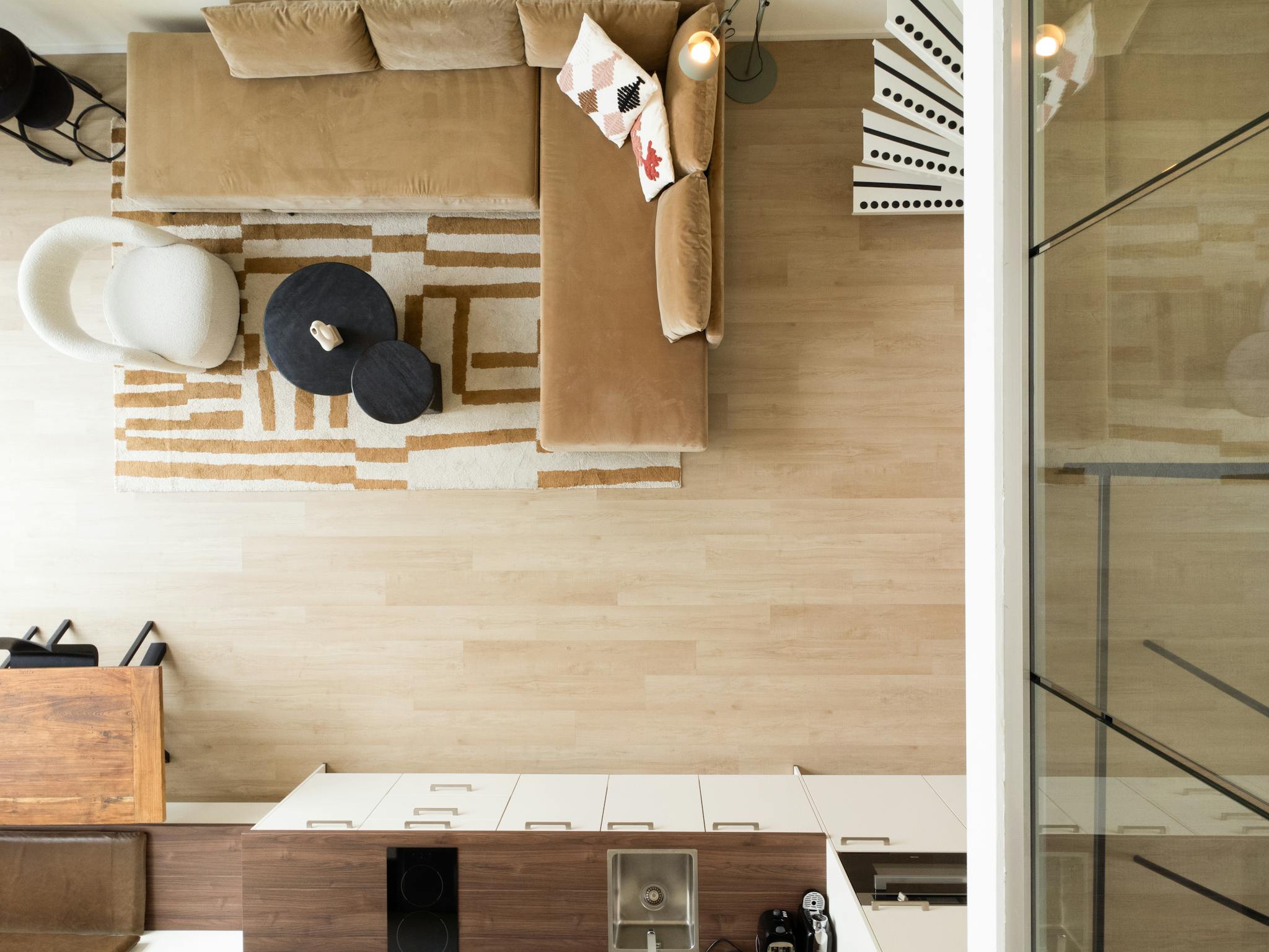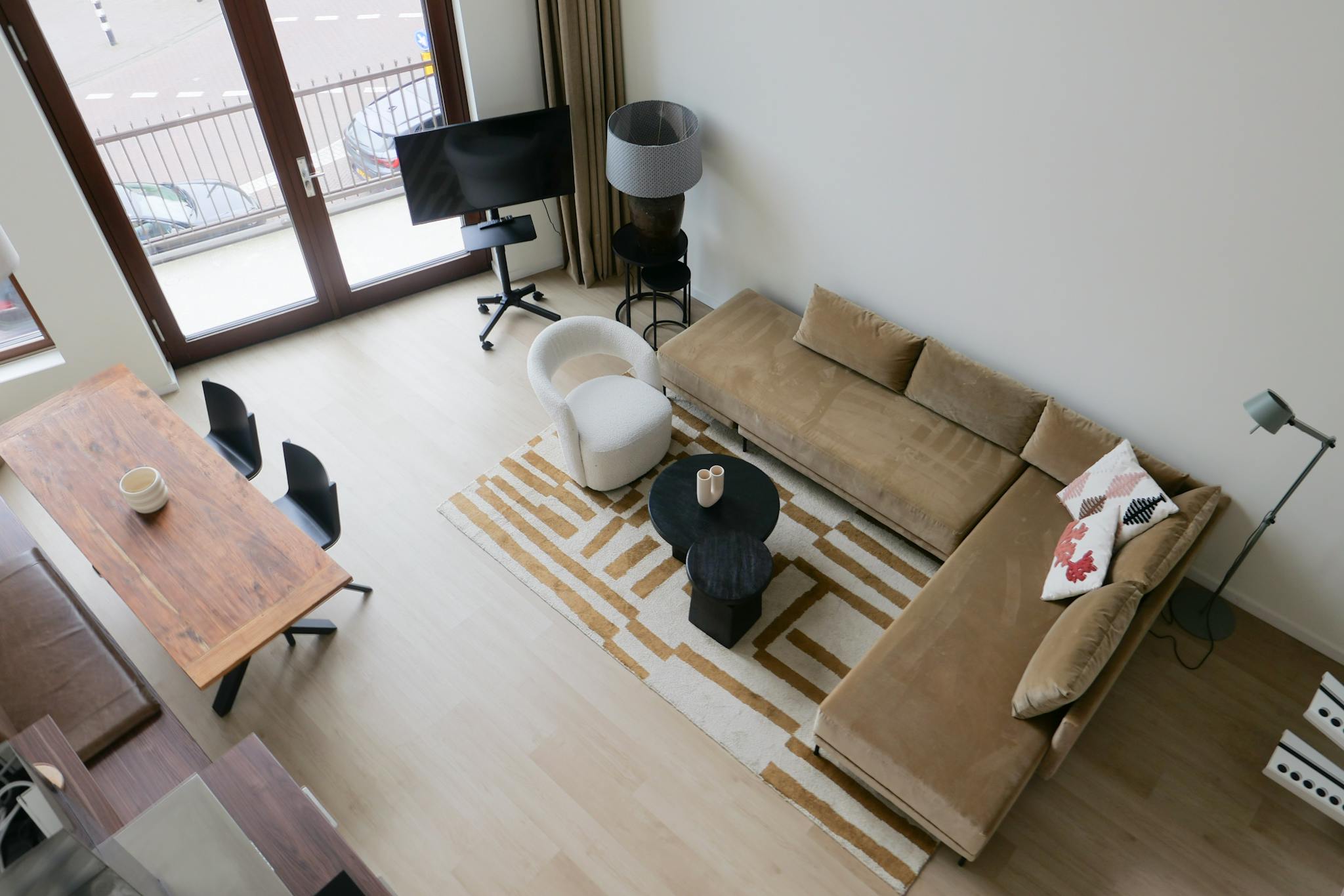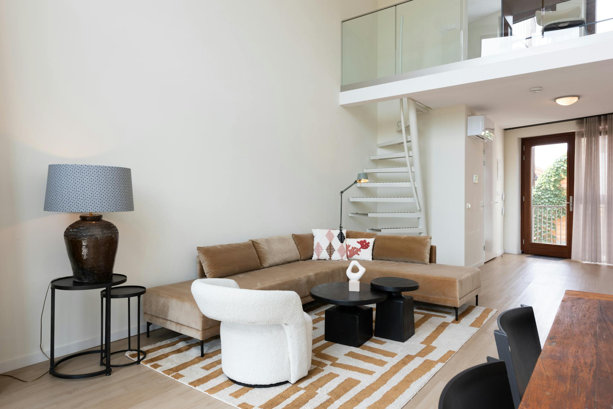 The loft apartments are the real eye-catchers. They radiate luxury and comfort and could come straight out of a home magazine. The homes feel spacious because the ceilings are extremely high and the windows extend all the way to the ceiling. On the ground floor of the loft apartments, you will find the kitchen, bathroom, and living room area. There is also a balcony. Those who take the stairs upstairs can sit behind a desk to work, with a view through the large windows. The sleeping area is also on the top floor.