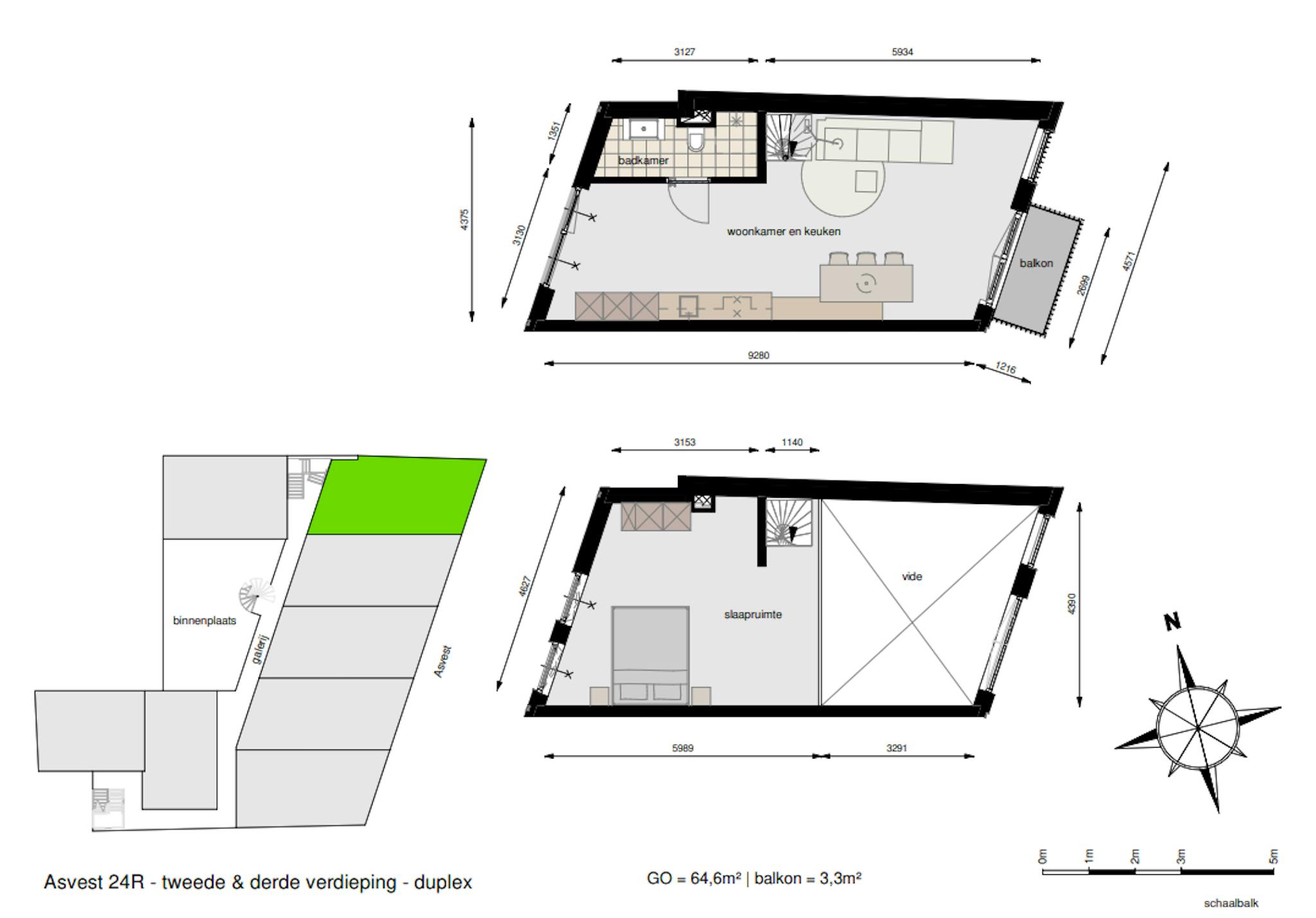 This loft apartment, located on the second & third floor of the building, is 65 square meters in size and has a balcony of 3,3 m2. The apartment is fully equipped and furnished with a bed, a sofa bed, a closet, a dining table, and chairs. The studio also comes with towels and bed linen.