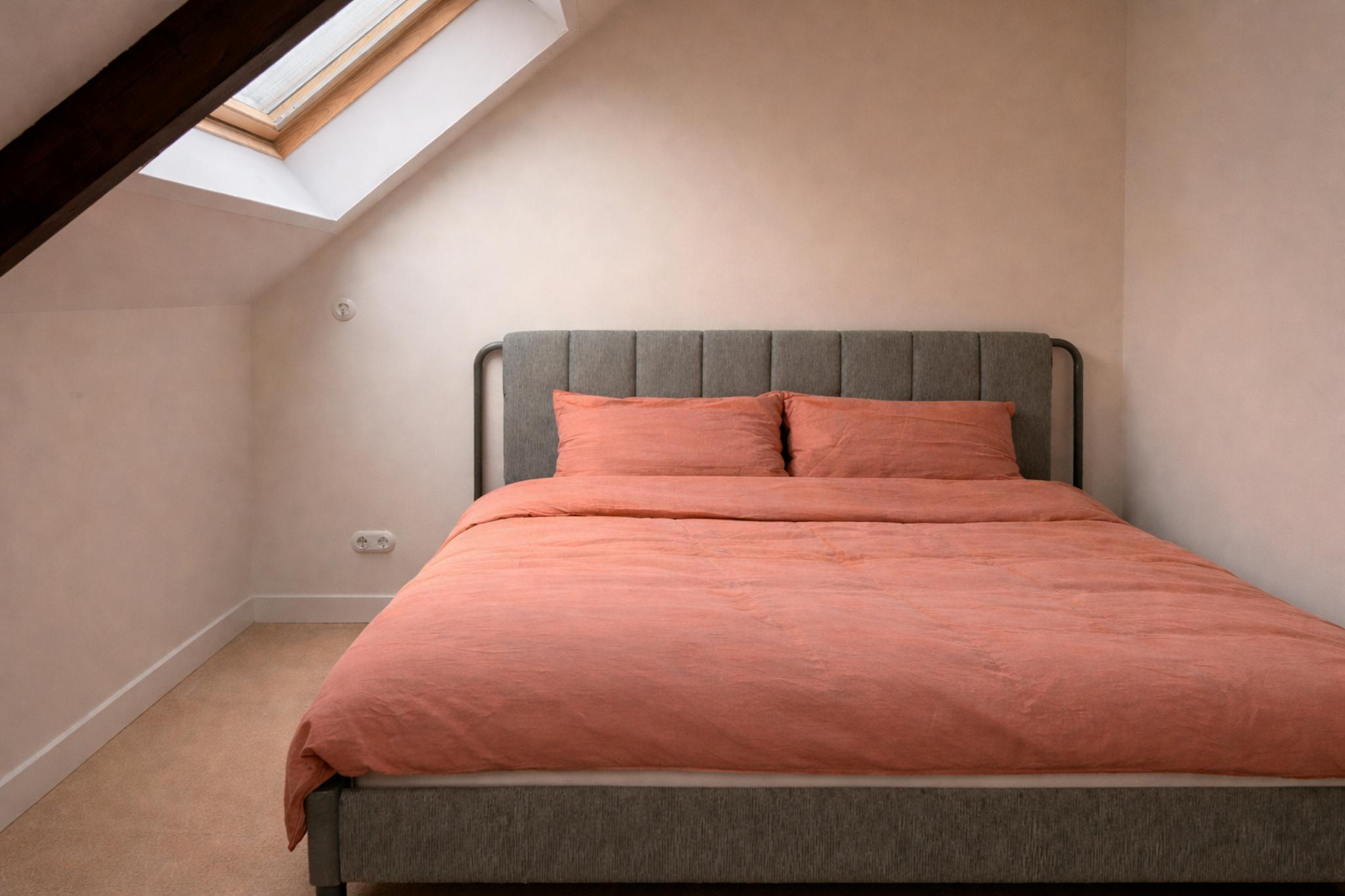 The apartment features three bedrooms, suitable for professionals, colleagues, or a small family. One of the bedrooms provides access to a private terrace, offering a pleasant outdoor space in the city centre.