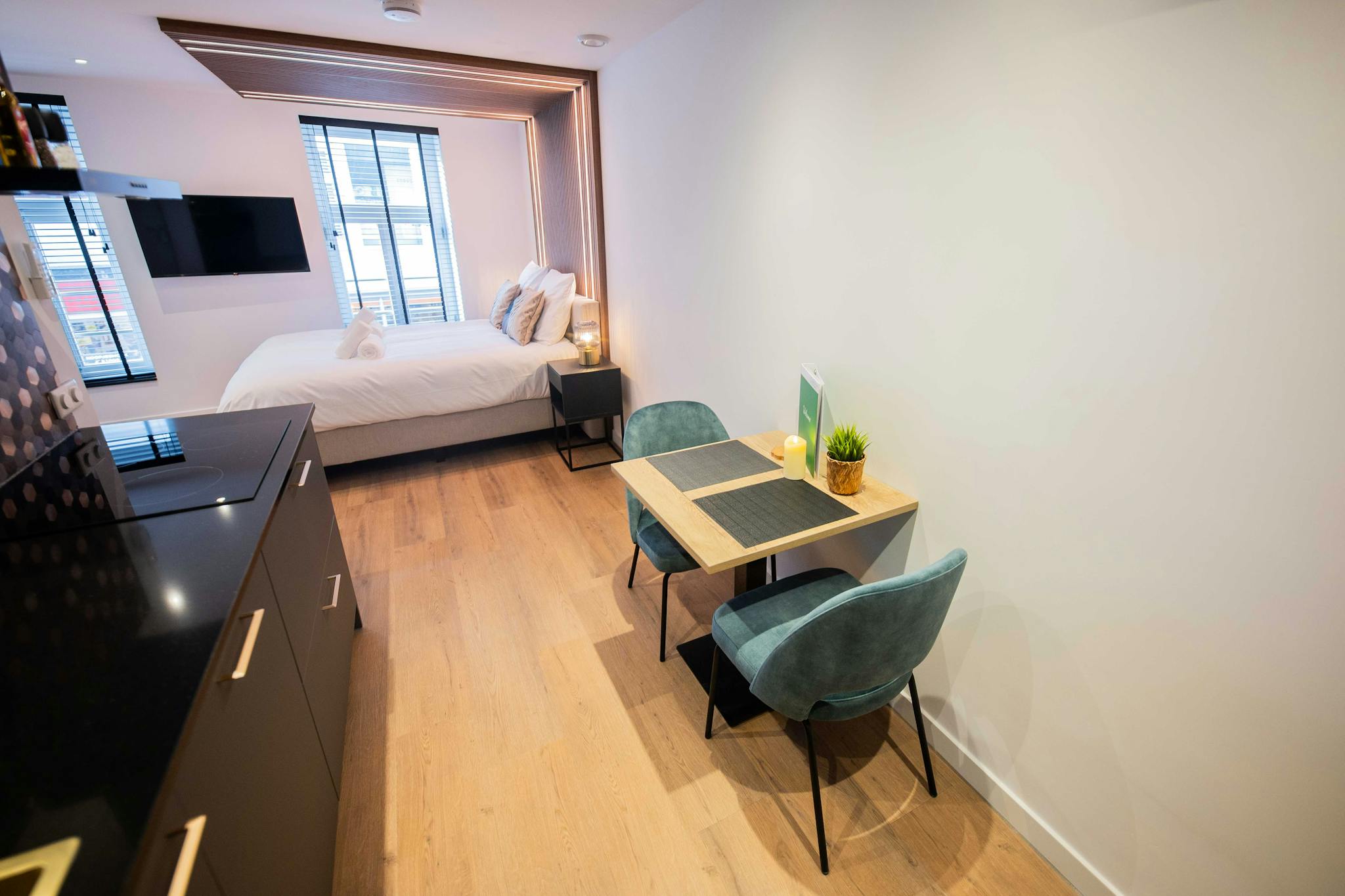 Non-SmokingNot allowedEnjoy a stylish experience at this centrally-located 35m2 designer studio in Eindhoven - close to everything you need! This accommodation is newly built in 2023. Featuring an open plan living / dinning area with a quality queen-bed, TV, AC, fully equipped kitchen, dining table, luxury bathroom with walkin shower and a washing machine / dryer. It easily accommodates up to 2 people and guarantees you a perfect stay!