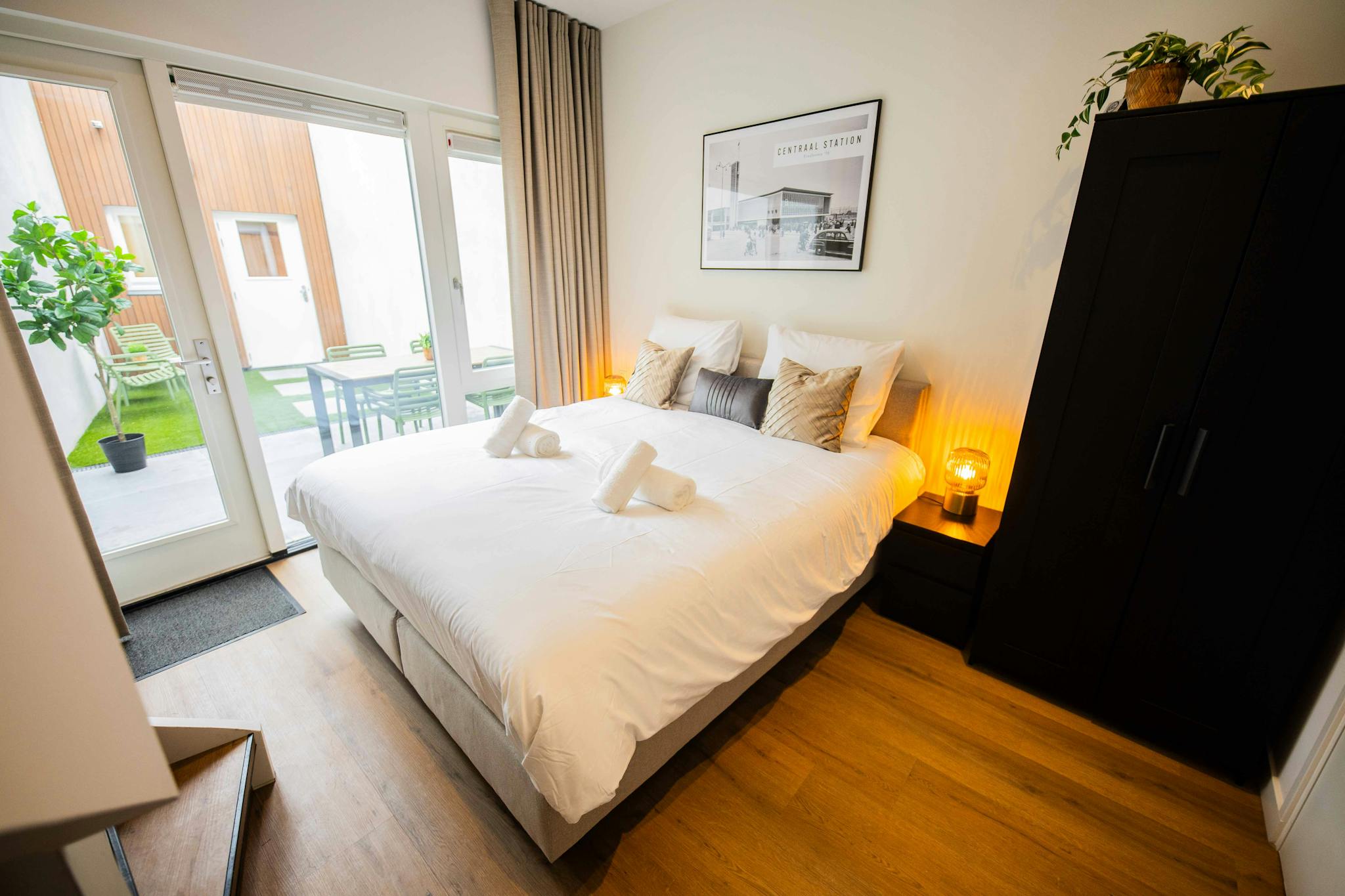 Non-SmokingNot allowedThis is a special and unique place in the city centre of Eindhoven - close to everything you need! Enjoy an exclusive fully equipped apartment with historical value, private garden and optional private sauna. Newly built in 2023 and can easily accommodates up to 4 guests. Book the extra sauna area for 30 EUR per day and receive a unique doorcode valid for 24 hours to access the 2-persons infrared sauna (incl. music installation), waterfall shower and toilet. It guarantees a perfect stay!