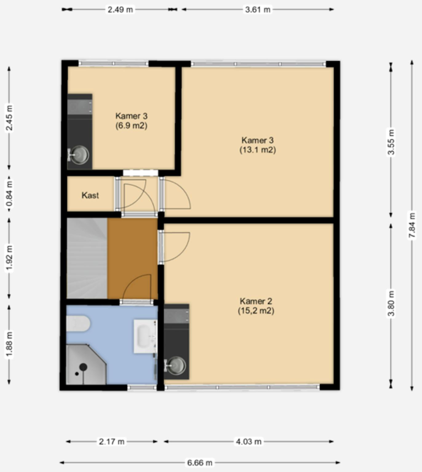- Room 2: 15.2 m2 → €772 per month (excl. utilities and furnishing)