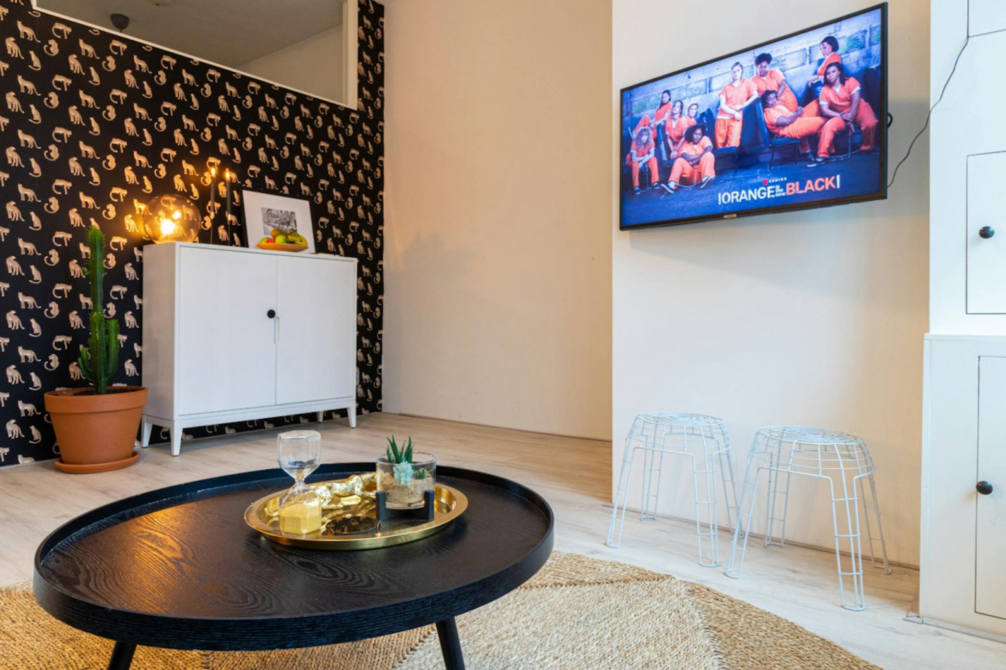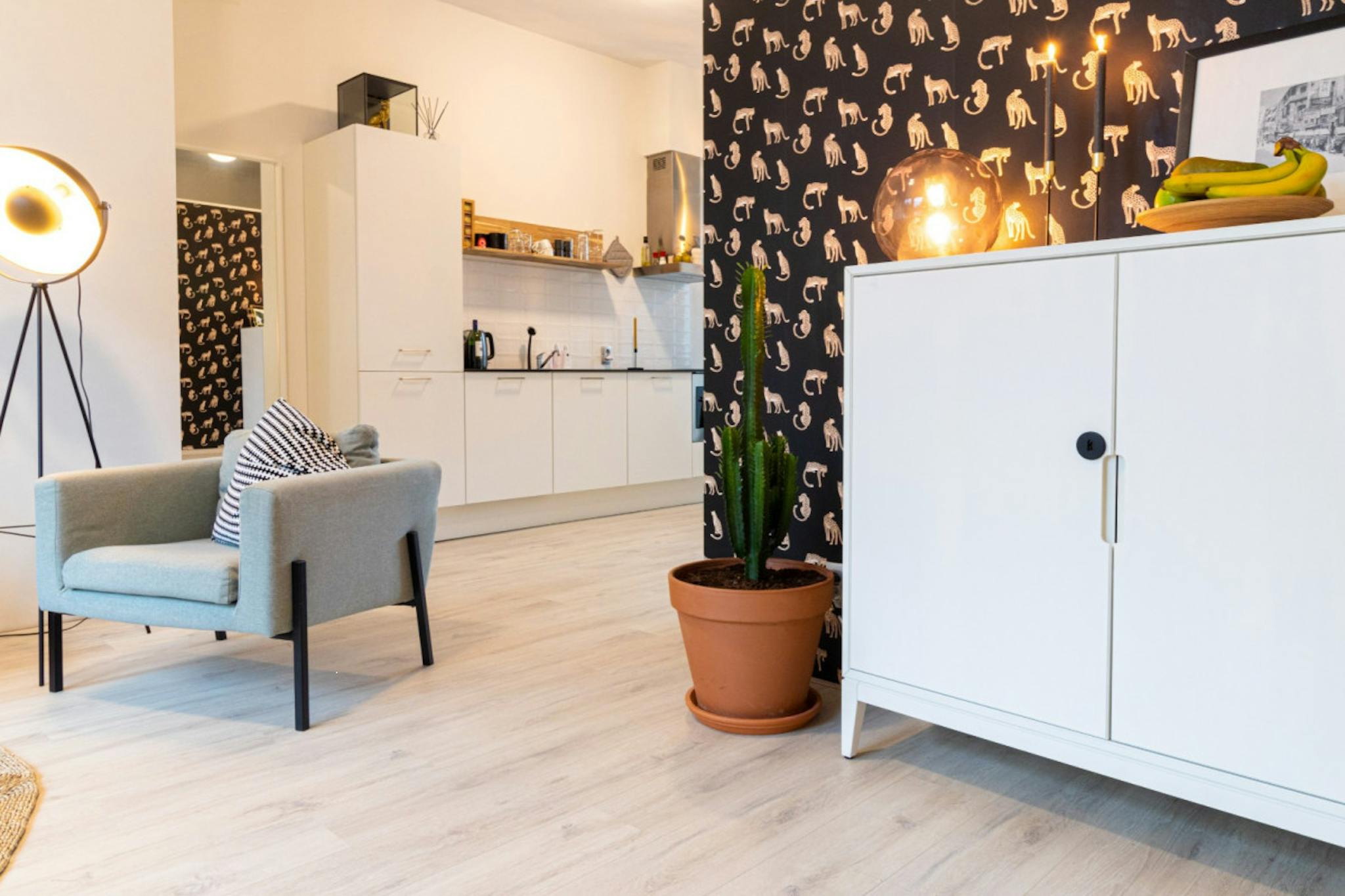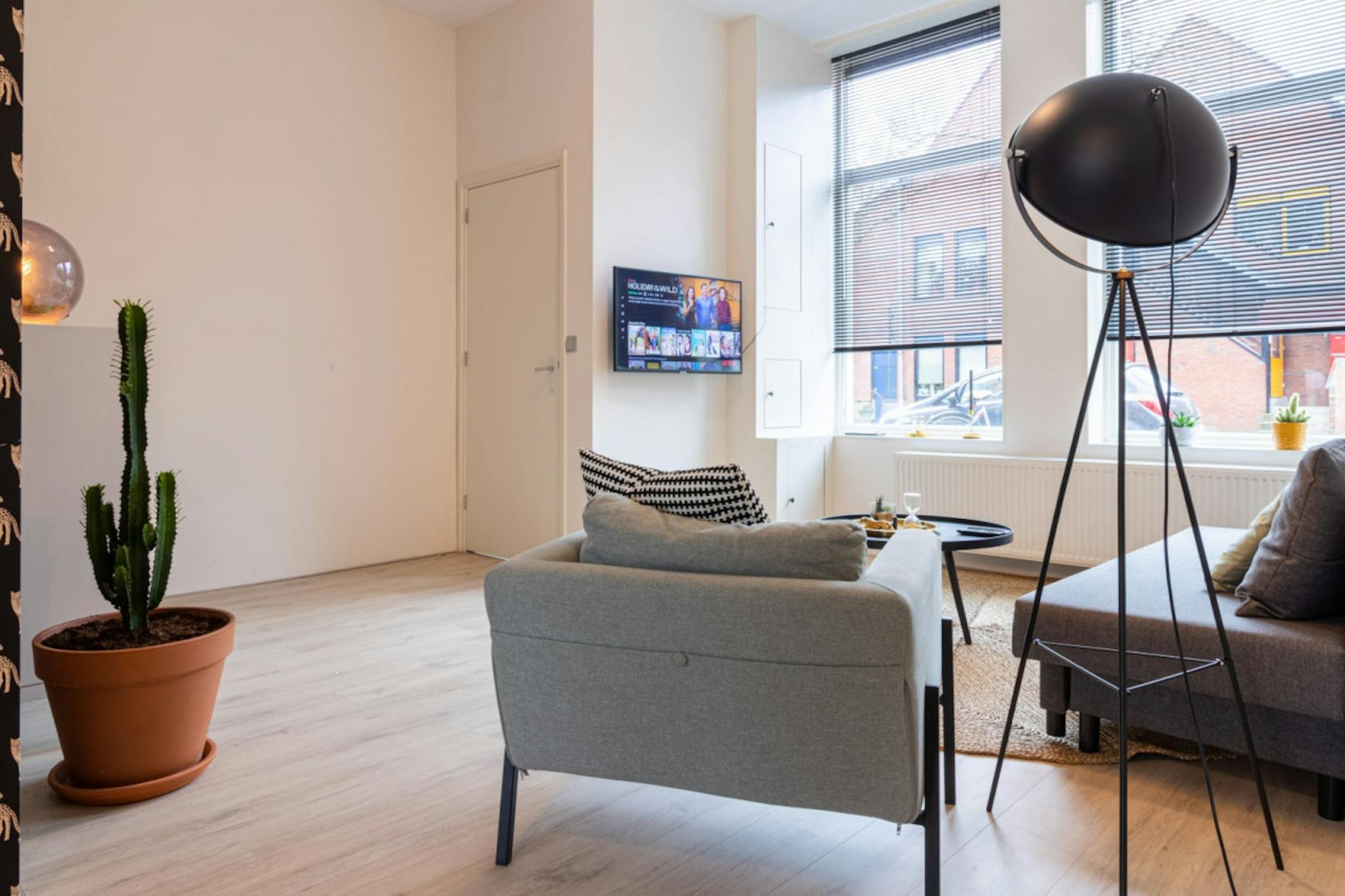 De woning wordt verhuurd inclusief de volgende zaken: maandelijks voorschot energie, TV en internet, volledige meubilering + inventaris en wasmachine + droger.
