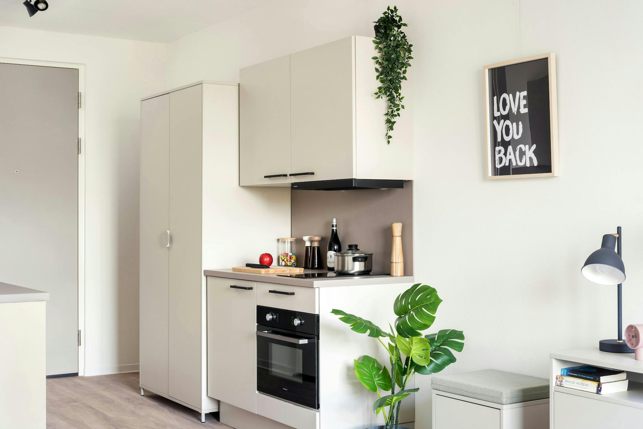 This accommodation makes moving in easy. From the moment you set foot into your new home, the house management staff is at your service to assist you with any help you might need or answer any questions you might have. The TULU vending machines are available around the clock to rent household items (e.g., vacuum cleaners, and irons).