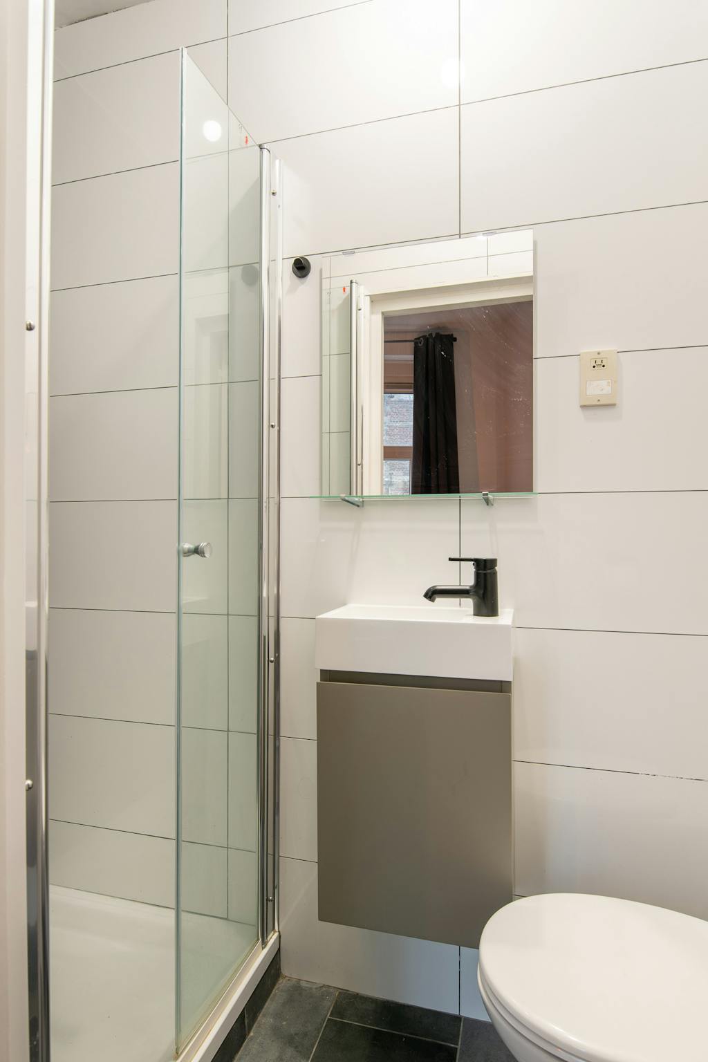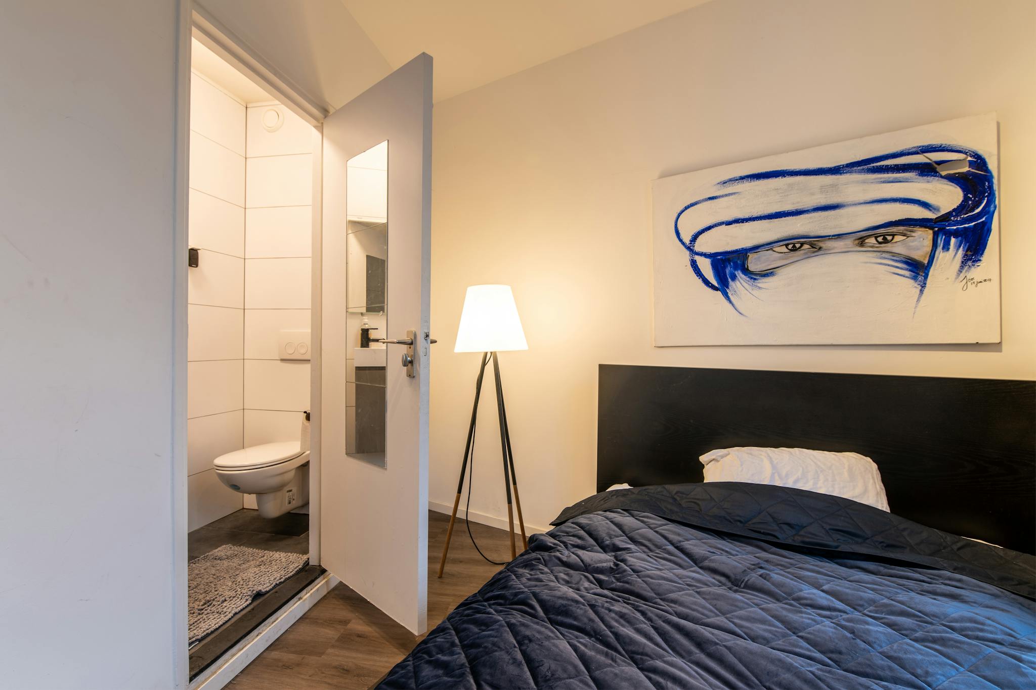 Woonkamer met aparte keuken met alle inbouwapparatuur en aparte slaapkamer met aansluitend badkamer. Badkamer met eigen wc, wastafel en douche. Gebruik van gezamenlijke wasmachine in de kelder. Leeg opgeleverd. Tegen 200 euro meerprijs volledig gemeubileerd