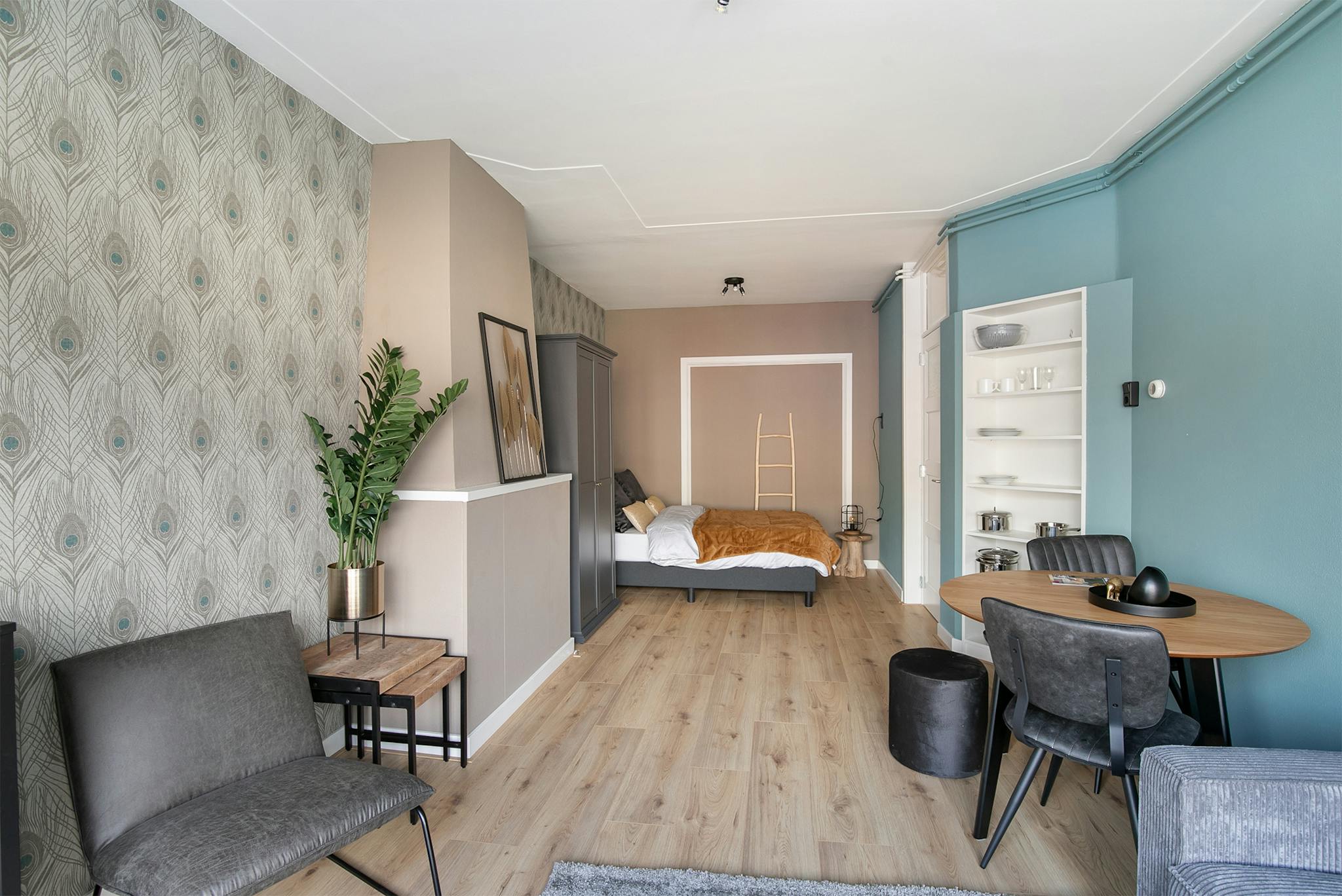 The room is located on the first floor at the front of the property. The Room is about 20m2 and is luxuriously and homely furnished. You will feel right at home here! The large windows at the front make this room a nice light room. In the evening, you look out over Pleinweg, where there is always plenty of activity.