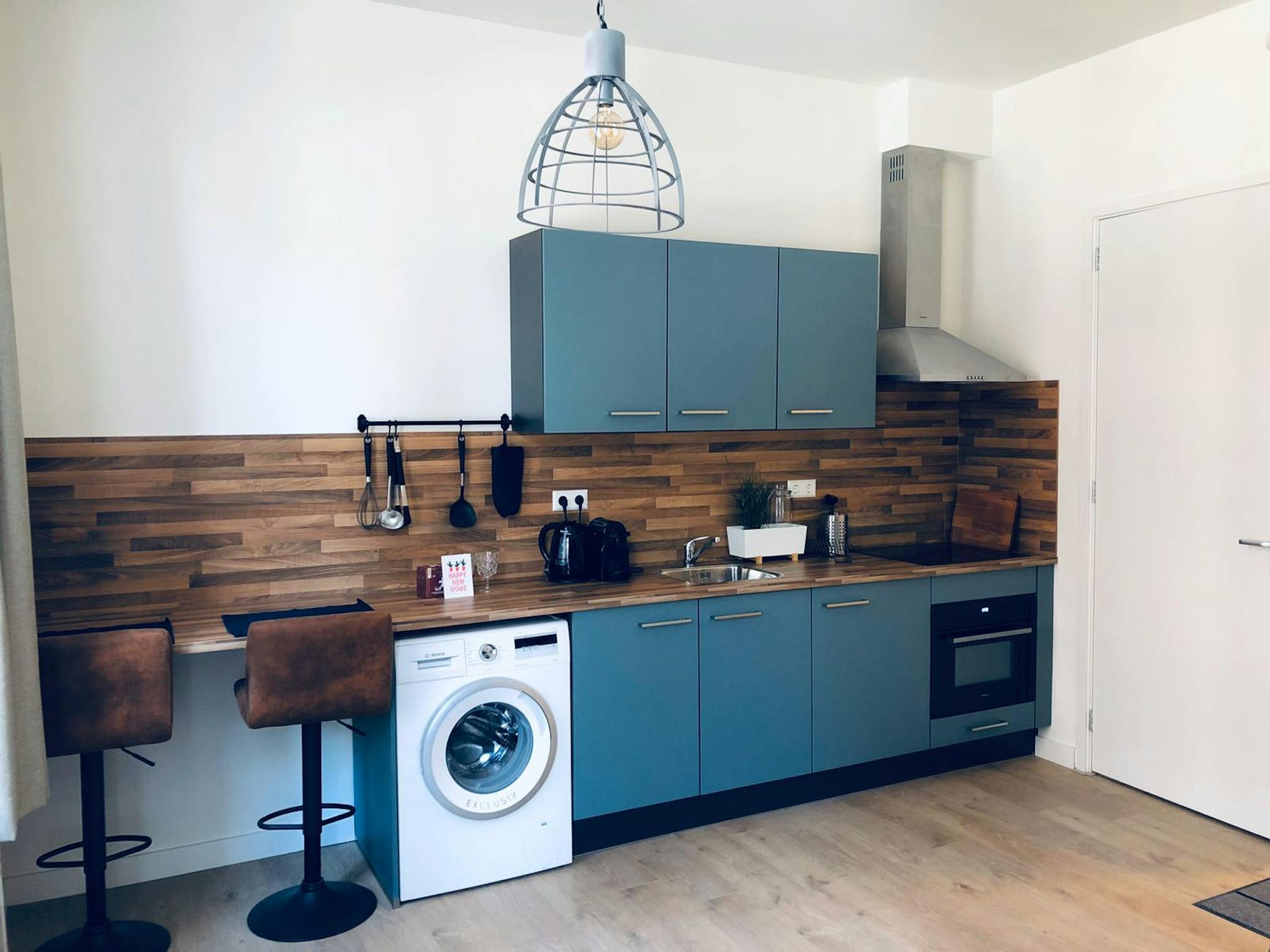 We provides fully furnished and hooked-up studios and apartments. You can just move in without any worries about furniture or utilities. The studio is well isolated and the kitchen includes what you would need to cook yourself a meal. The studio includes a smart tv, a washing machine and a dryer, microwave and an oven. The studio has wifi and the tenants can make use of the shared garden. Located at the 2nd floor.
