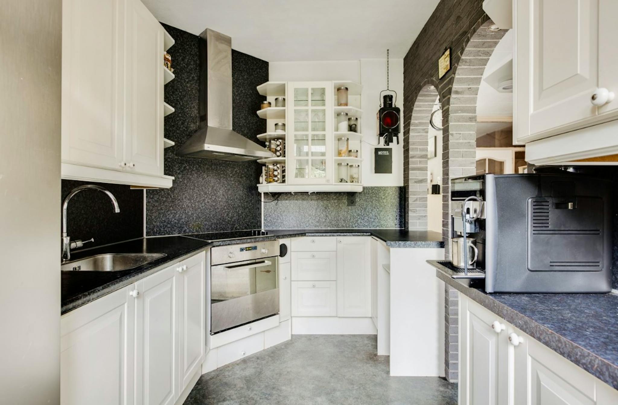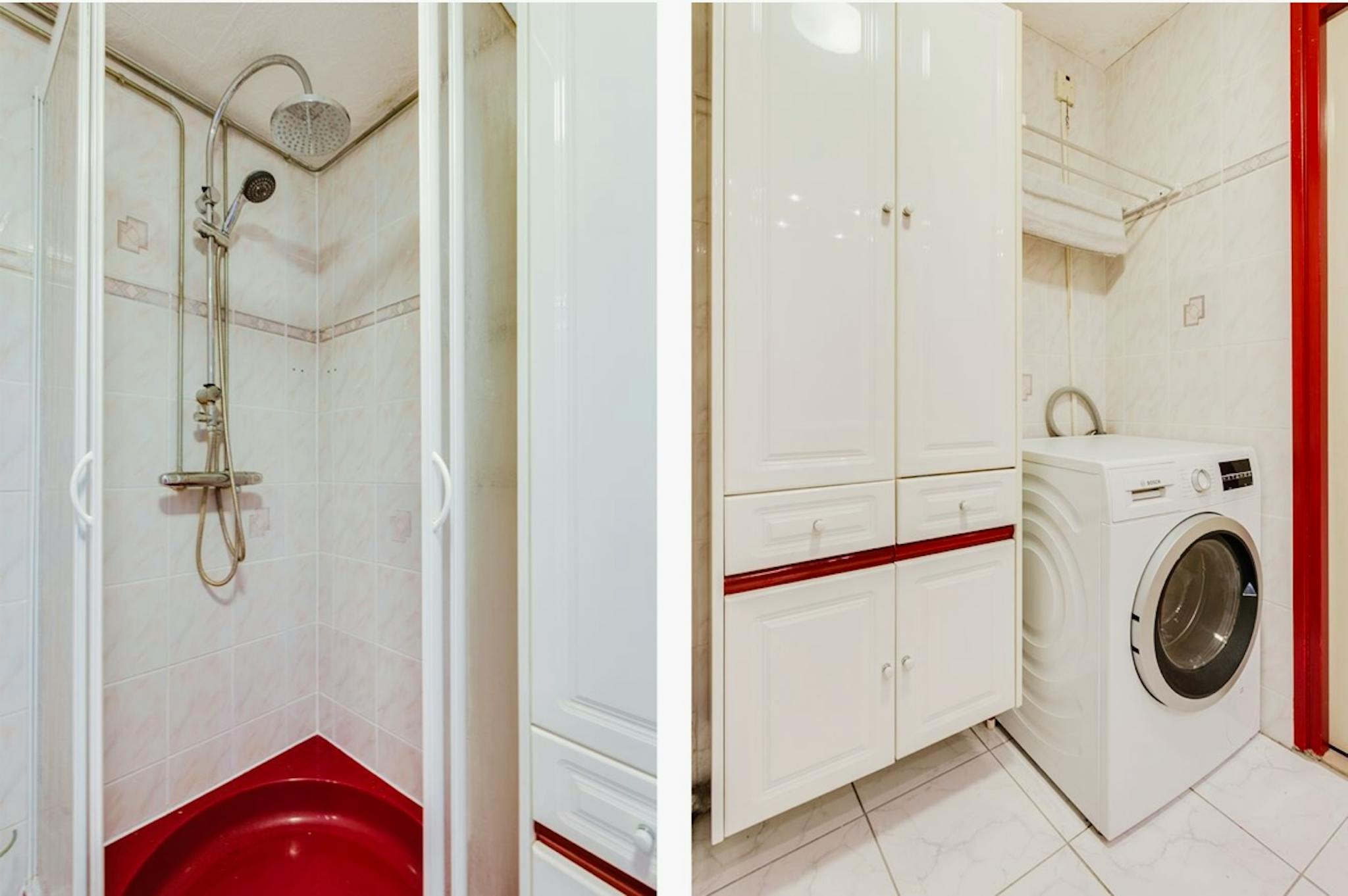 - Kitchen is equipped with induction stove, extract hood, oven, washing machine.