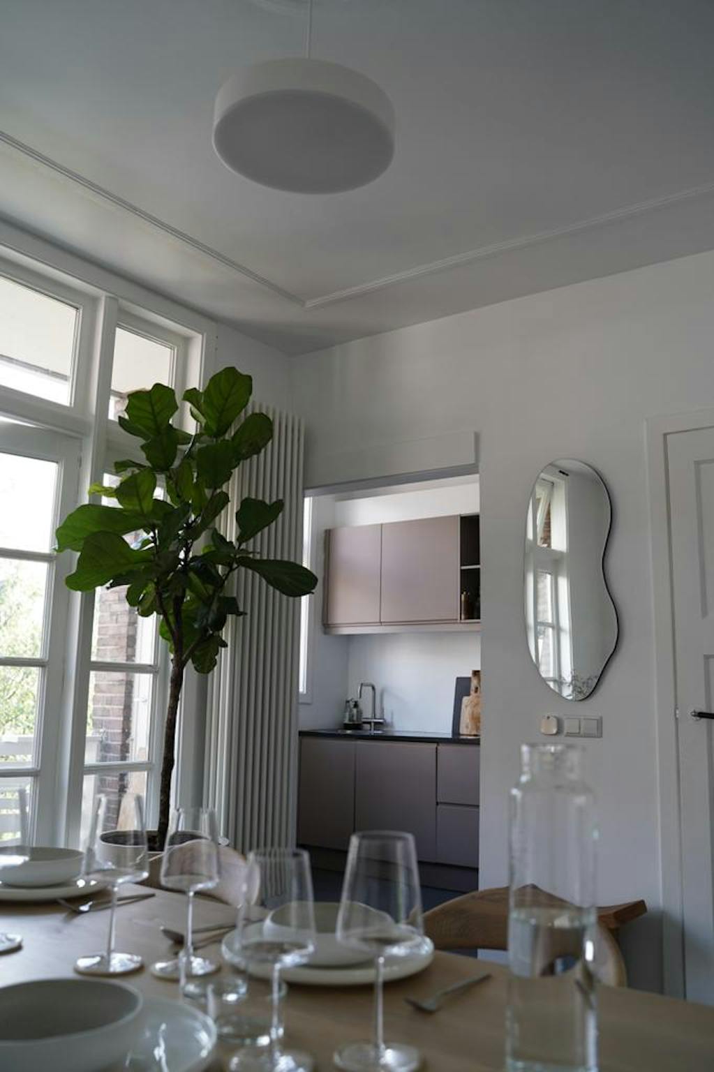 Een fijne airco, om de slaapruimte koel te houden, design meubels en een grote 8k Samsung televisie.