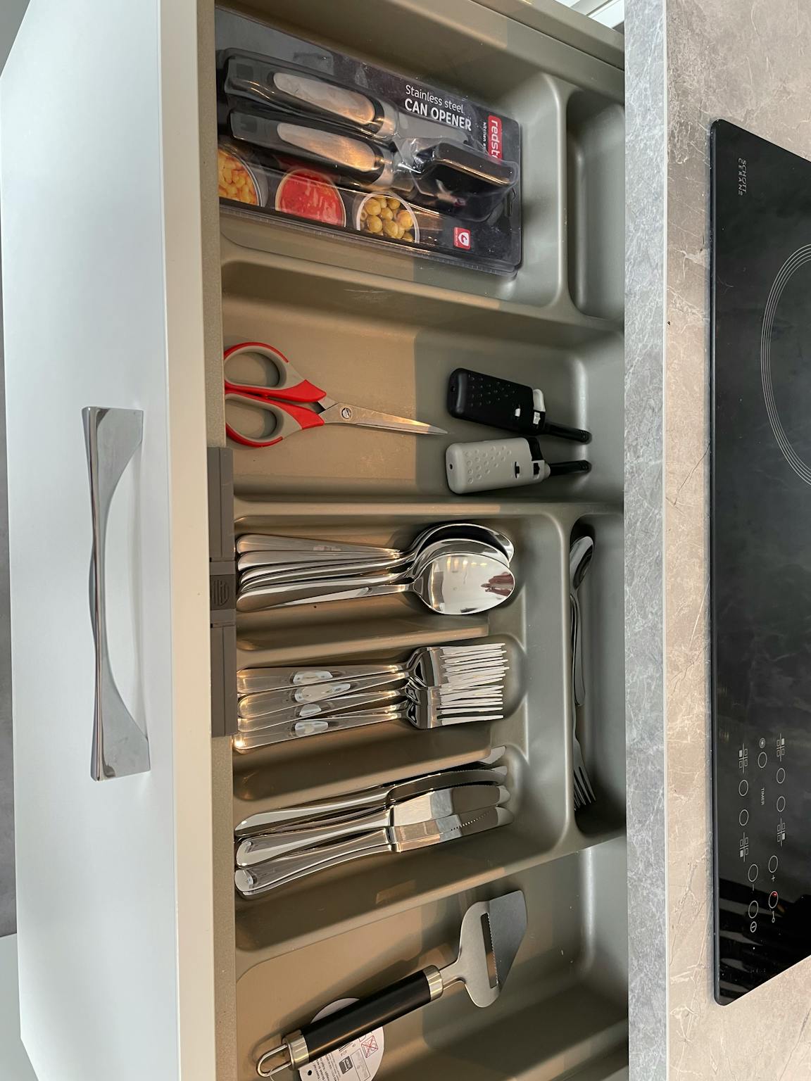 Kitchen: large, luxurious kitchen~diner with a fridge-freezer, induction cooktop (gas free), and lighting on the middle floor