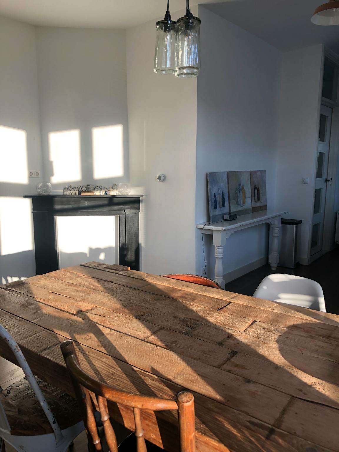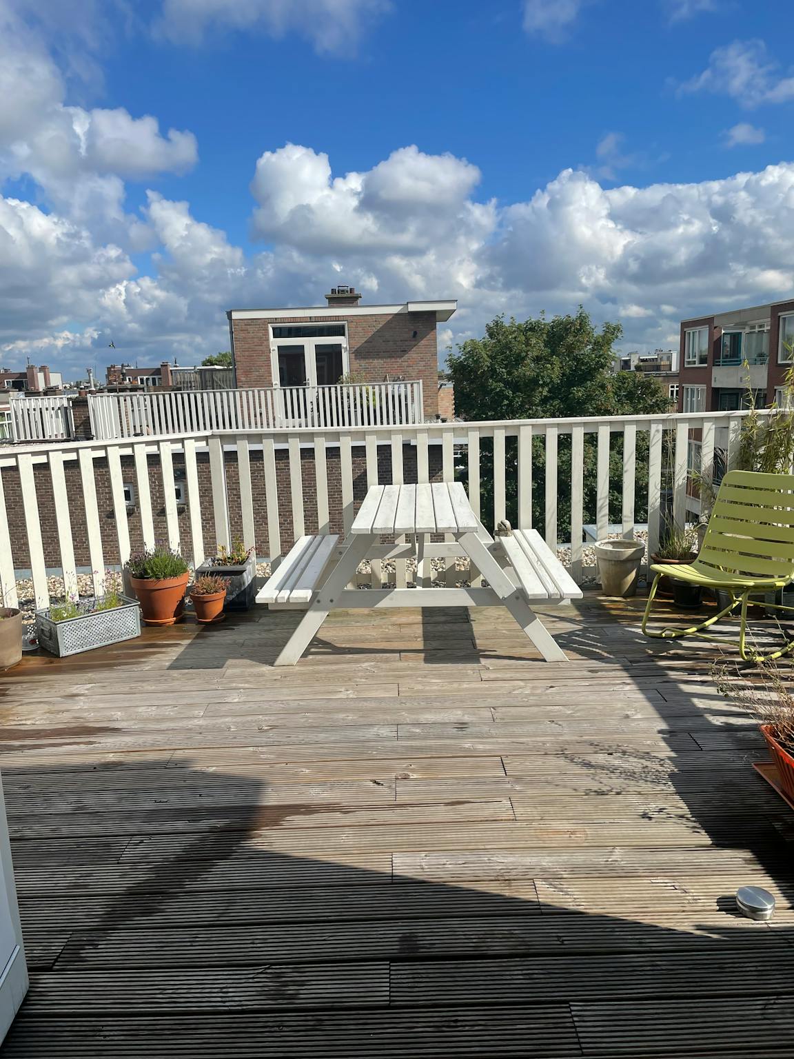 Non-SmokingNot allowed100m2 apartment in the trendy area Bomenbuurt. A large living with open kitchen (with everything for cooking), fire place, design bath, a big rooftop terras. There are 2 bedrooms: one big upstairs and one smaller one downstairs. Upstairs is also the bath room and the big terrace. The small bedroom has a small balcony with a shed. Bathroom can only be entered via master bedroom.