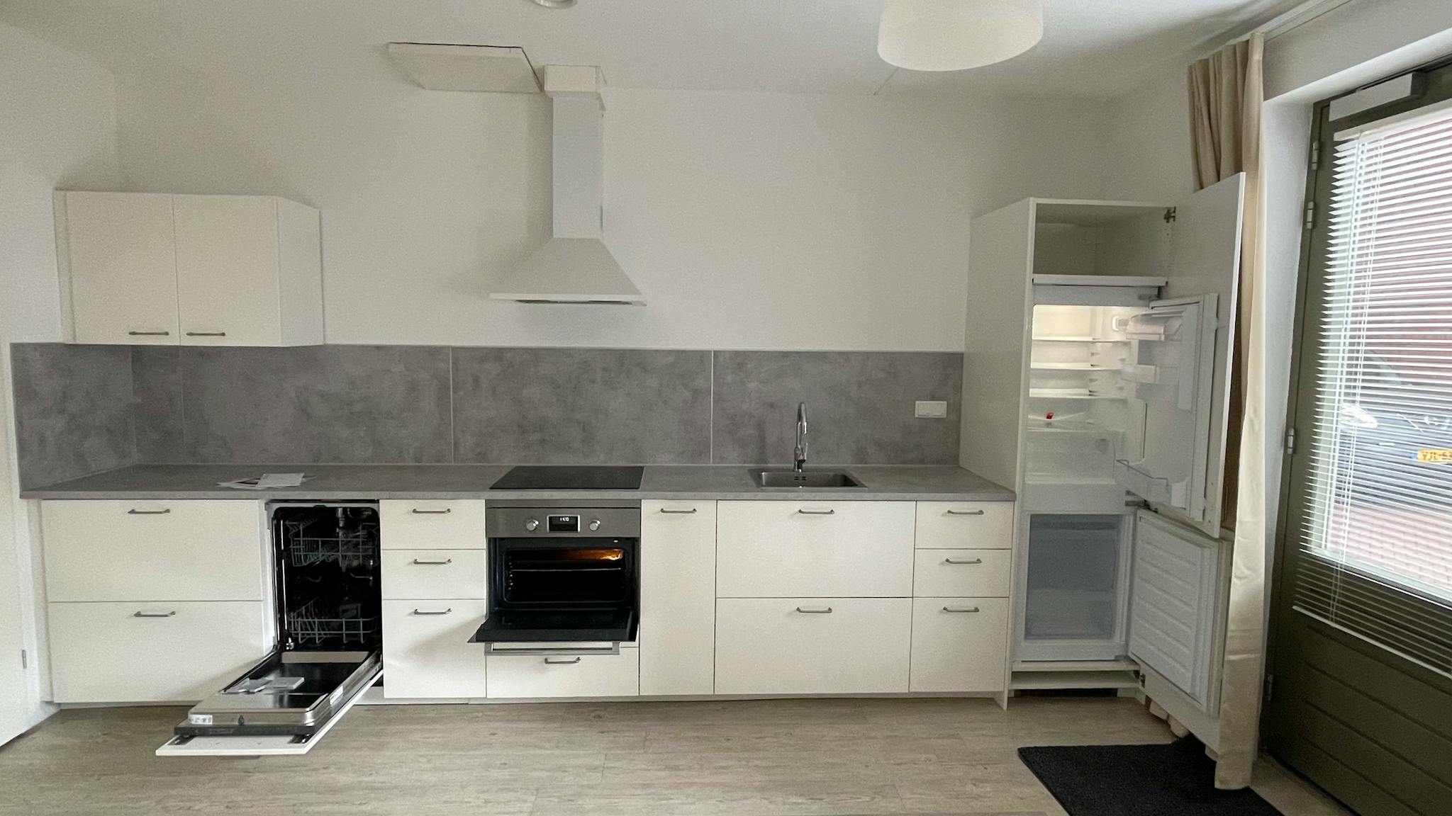 The apartment has a lot of light coming in both in the living room and bedroom. Including a bright kitchen with various built-in appliances. Underfloor heating throughout the home makes it an energy-efficient house with energy label A+ The property will be delivered uphostered with a beautiful PVC floor, painted walls, lamps, curtains, drapes and wardrobes.