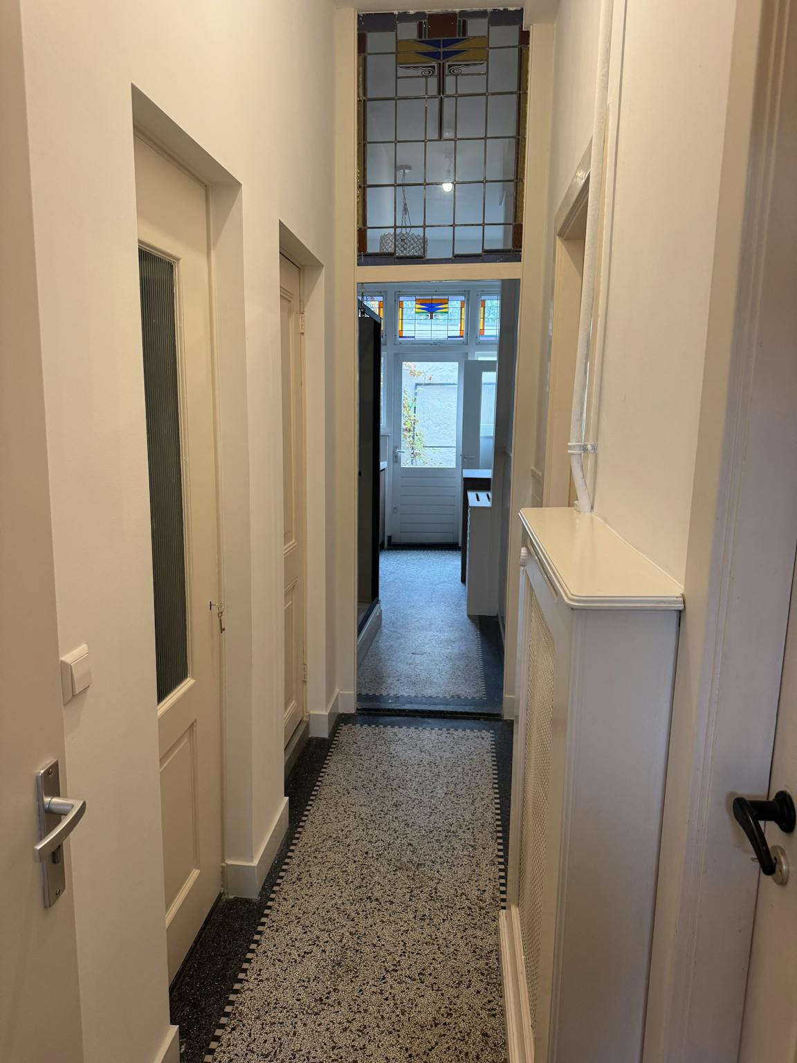The apartment (approx. 80 m2) occupies the ground floor and basement. Through a stately general entrance you enter the house with your own entrance on the ground floor. Beautiful original cast floor in the hall that takes you to the kitchen and the back door to the garden.