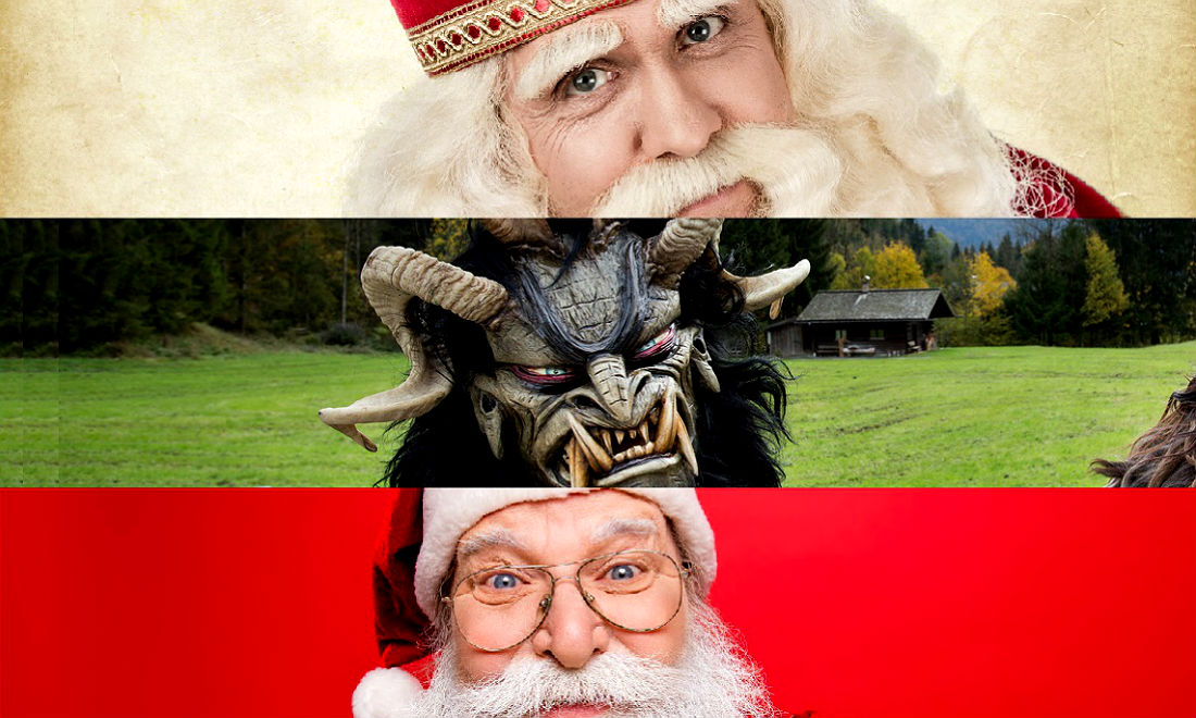 Krampus appears in Austria, Slovenia, and Croatia. He is an evil, demonic creature who accompanies Sinterklaas to punish naughty children.